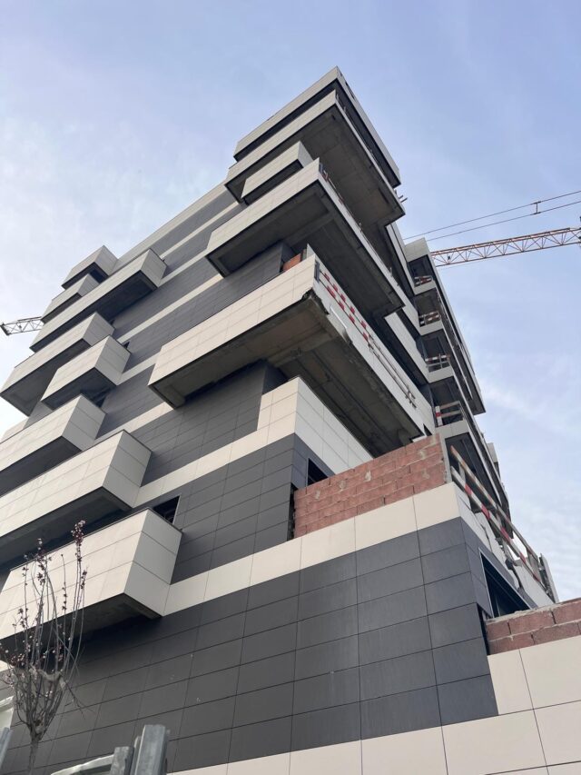 Neste projeto, a aplicação de fachada ventilada destaca-se como uma solução construtiva de elevada performance, melhorando o isolamento térmico e acústico, aumentando a eficiência energética e garantindo maior durabilidade ao edifício. Um acabamento que alia estética contemporânea, conforto e sustentabilidade.